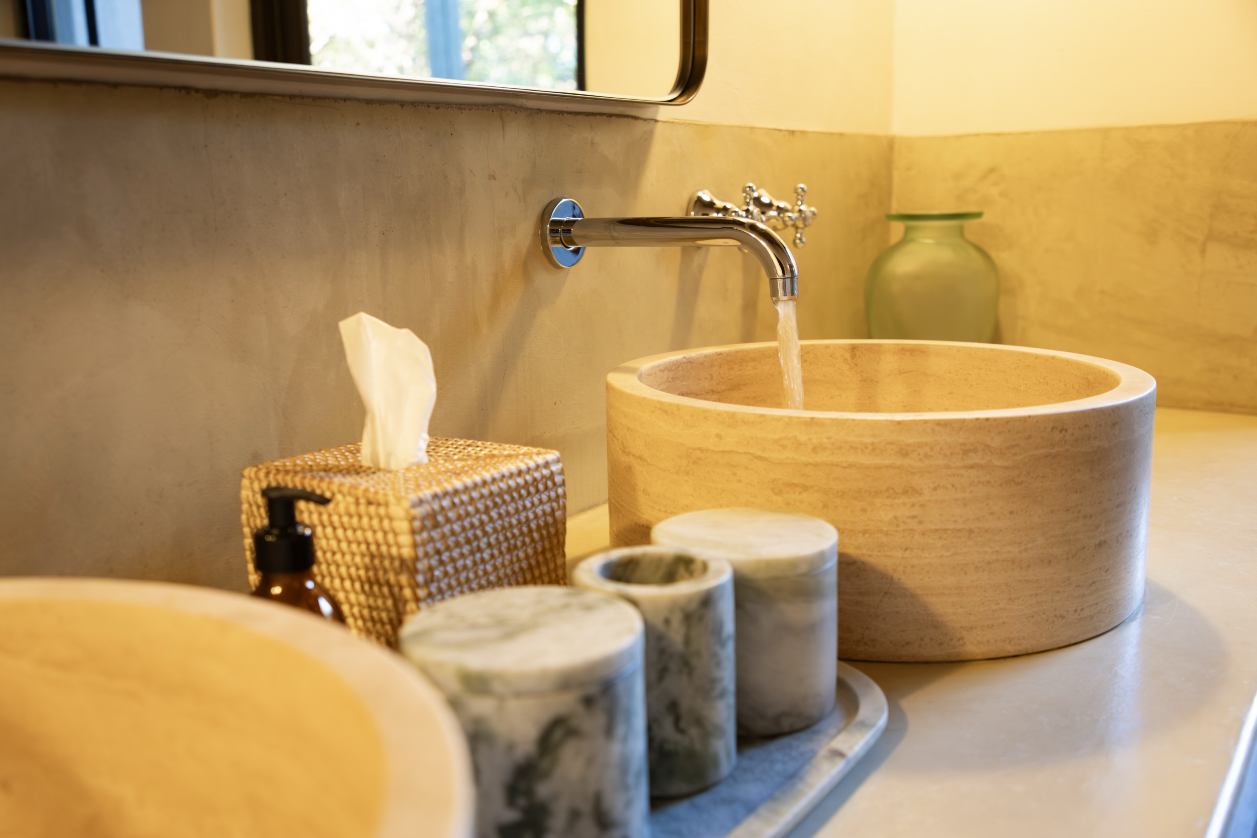 Dieses Haus verfügt über 3 geräumige Schlafzimmer, die wunderschön in natürlichen Pantone-Farben gestaltet sind, die das Äußere ergänzen. Es gibt 2 Badezimmer mit luxuriösen Außenduschen, die Sie nach einem Bad im Pool oder am Abend unter dem afrikanischen Himmel genießen können. Eines der Badezimmer ist ensuite und mit einer Badewanne ausgestattet, in der Sie nach einem aufregenden Tag entspannen können. Darüber hinaus verfügt das Haus über ein separates Büro mit Klimaanlage.