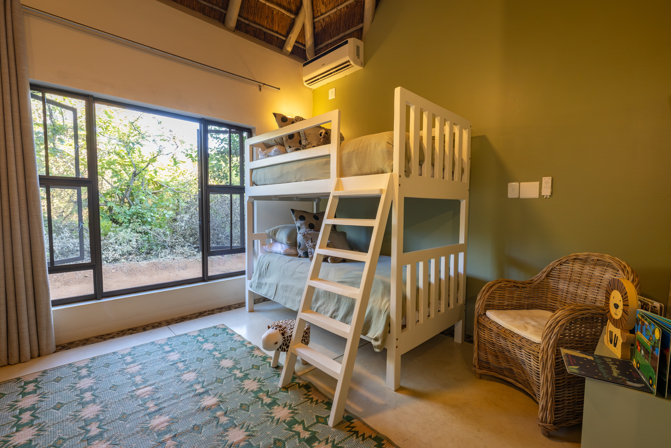 • Kinderzimmer mit Etagenbett, Spielzeug, Klimaanlage und Ventilator