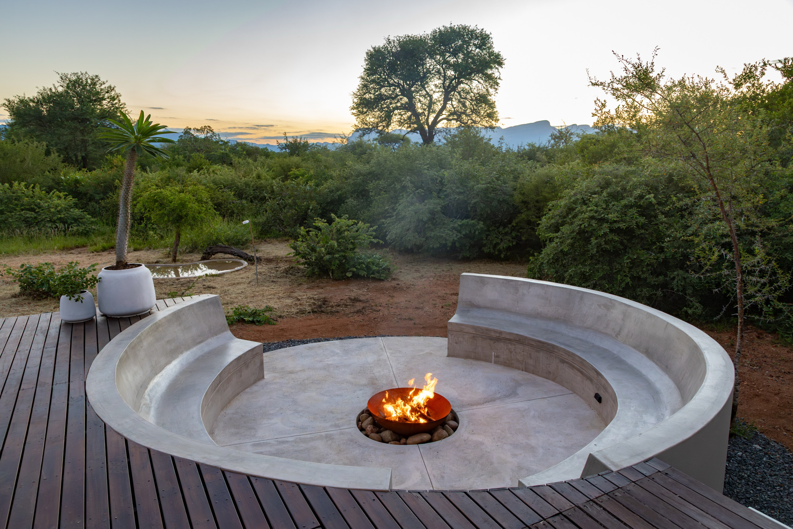 • Große Feuerstelle & Grillbereich mit Blick auf das Wasserloch