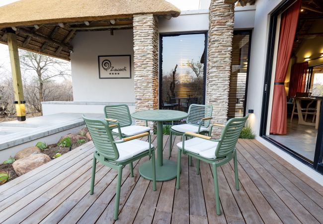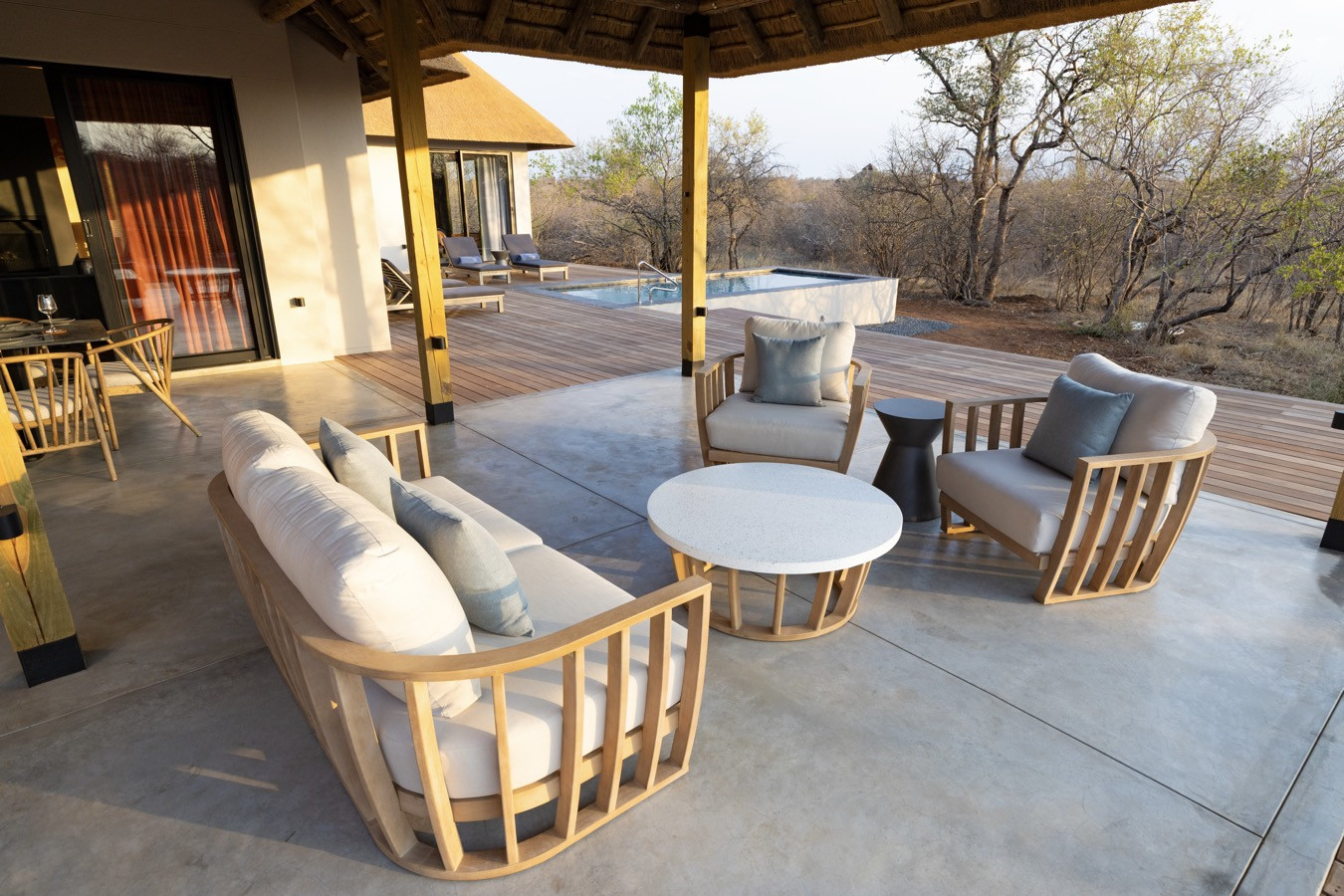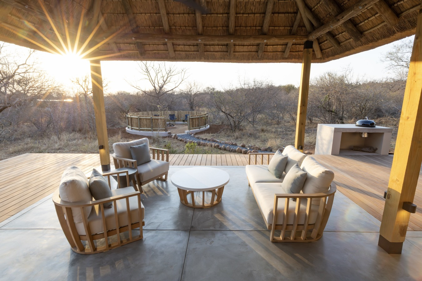 Auf dem großzügigen Loungebereich können Sie einen schönen Blick über den Busch genießen. Regelmäßig zeigen sich hier wilde Tiere, aber auch ohne das ist es eine Freude, den Klängen der Natur zu lauschen.
