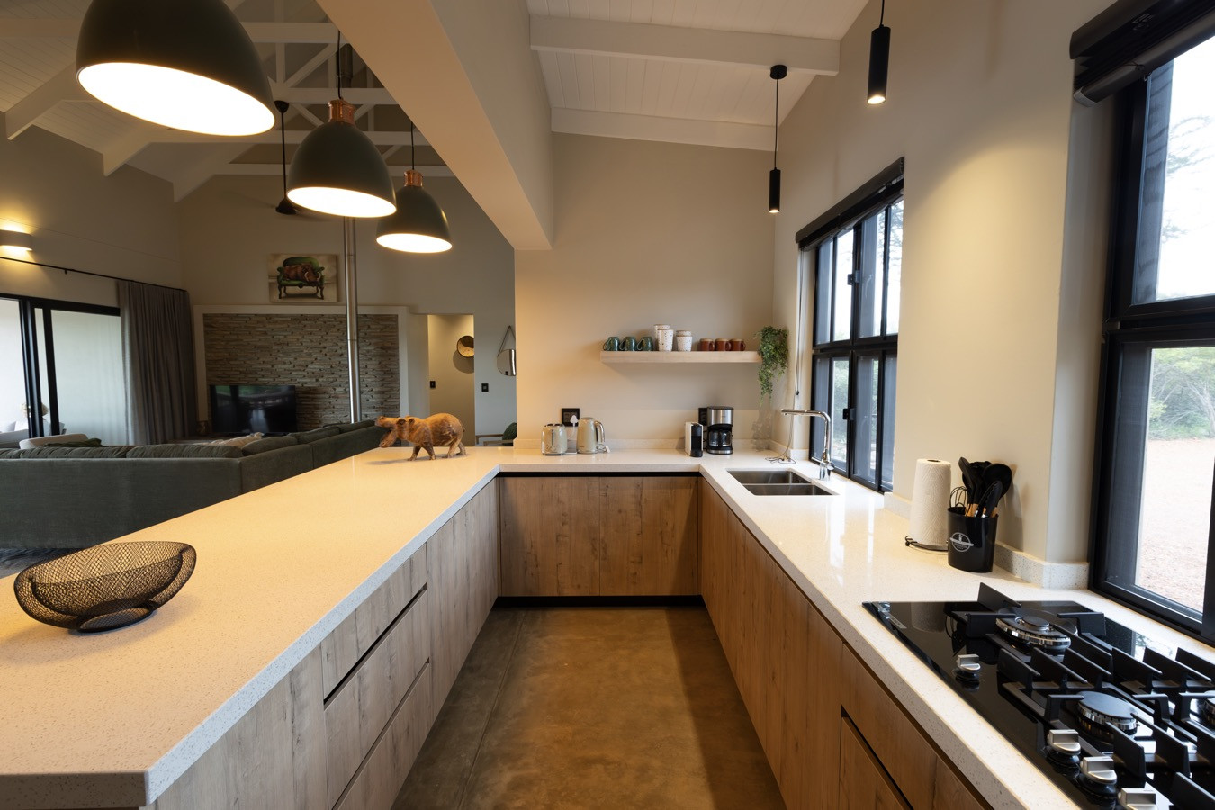 Deze nieuwe villa is een mooi 6-persoons vakantiehuis gelegen in Hoedspruit. Een plaats waar het klimaat het gehele jaar aantrekkelijk is om te vertoeven en waar Kruger National Park en de Blyde River Canyon op een steenworp afstand gelegen wachten op uw bezoek.