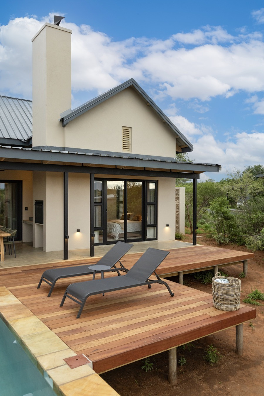 De patio is ideaal om te ontspannen of te genieten met vrienden en of familie, met een loungehoek, eettafel en ingebouwde braai. Ontspan het hele jaar door in het verwarmde privézwembad met martinizitje. Geniet ’s avonds van een sundowner rond de boma of rooster marshmallows met de kinderen onder de sterrenhemel.