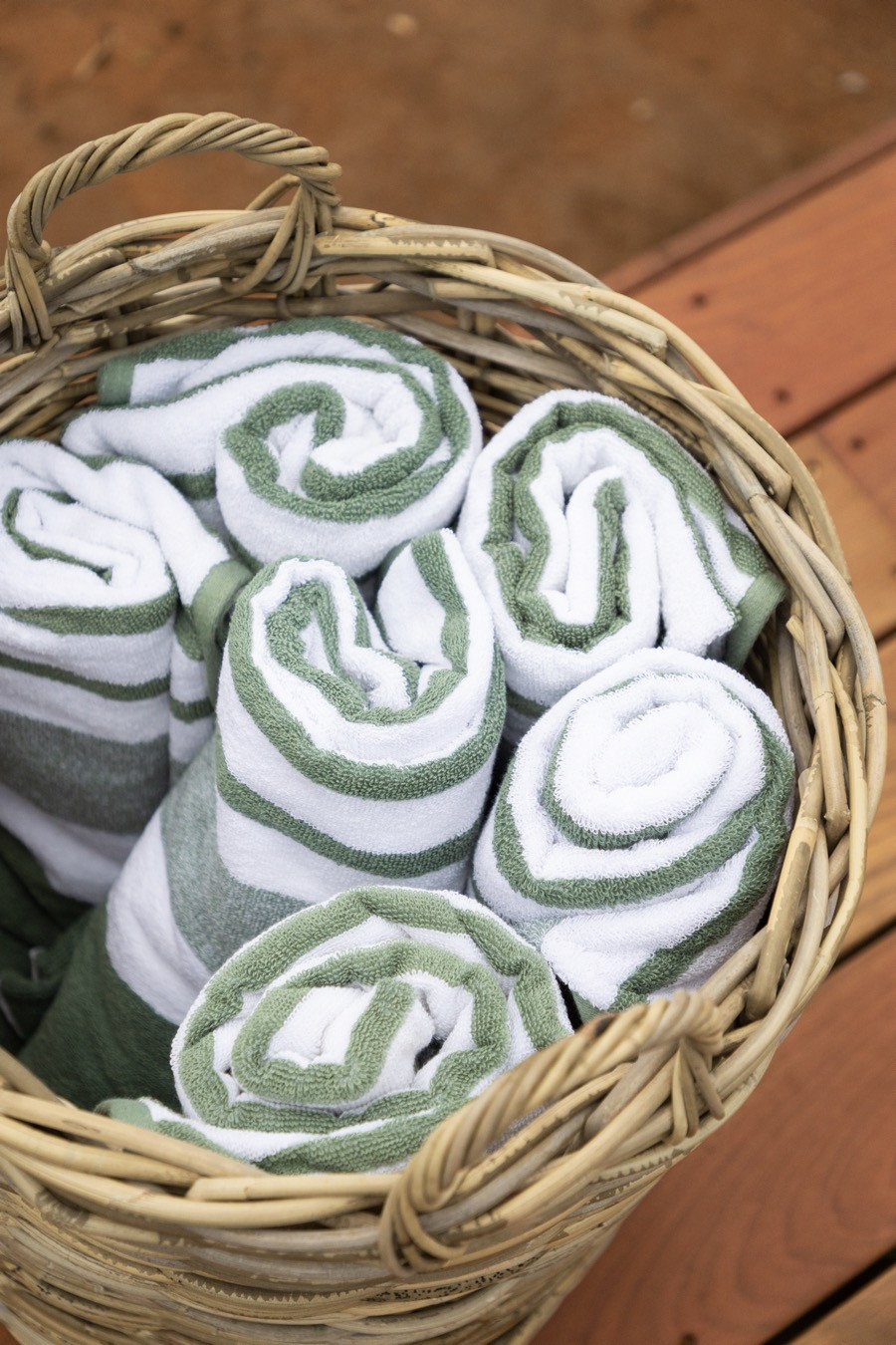 De drie ruime slaapkamers zijn voorzien van airconditioning, een ventilator en klamboes. Twee slaapkamers delen een aparte badkamer met douche, toilet en buitendouche. De master bedroom beschikt over een eigen badkamer met ligbad, douche, toilet en eveneens een buitendouche.