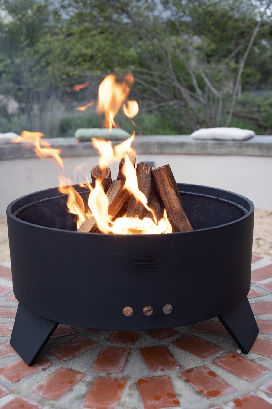 ’s Avonds is het genieten van de ongelooflijke sterrenhemel bij het gezellige kampvuur of op het terras aan de grote 6-persoons eettafel met een heerlijk stuk vlees of vis van de braai (Weber).