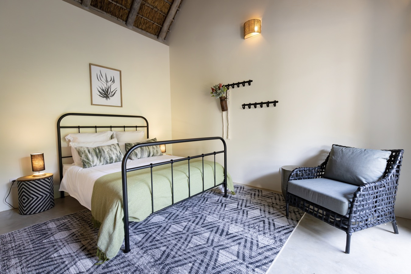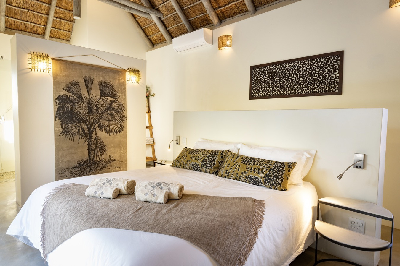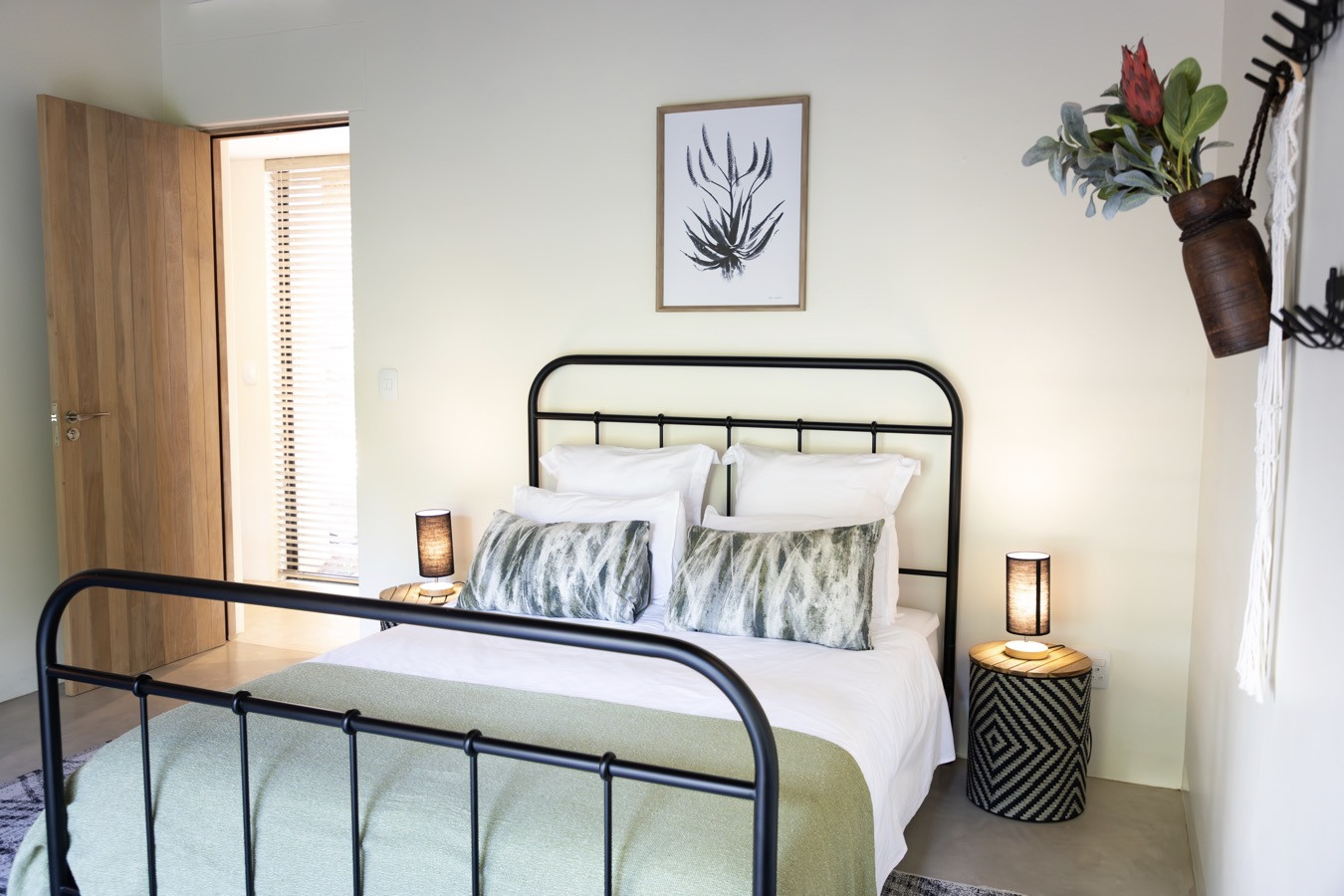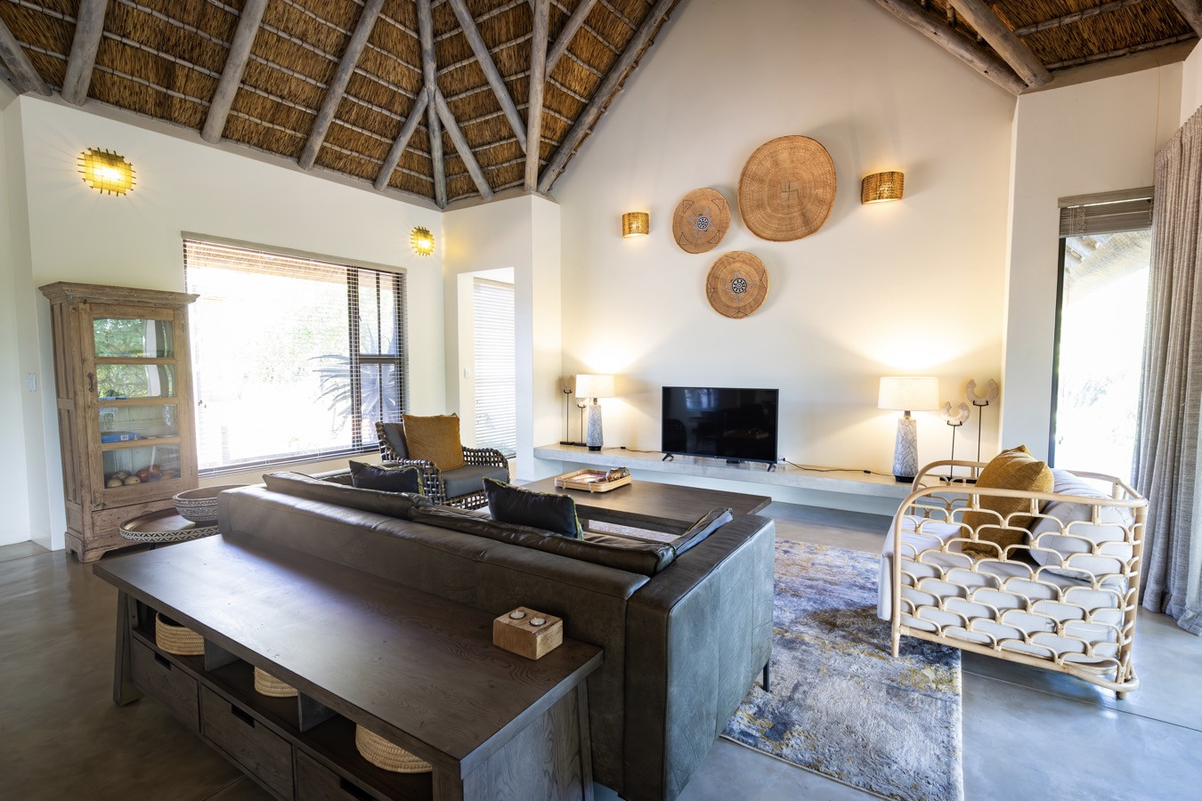 De inrichting is sfeervol en modern Afrikaans en het huis is praktisch van opzet. De twee master bedrooms zijn voorzien van tweepersoonsbedden, een ensuite badkamer met dubbele waskommen en buitendouche. De huiskamer met een heerlijke comfortabele hoekbank grenst direct aan het zonnige terras. De harmonica schuifdeuren kunnen volledig weggeschoven worden waardoor buiten en binnen een geheel vormen