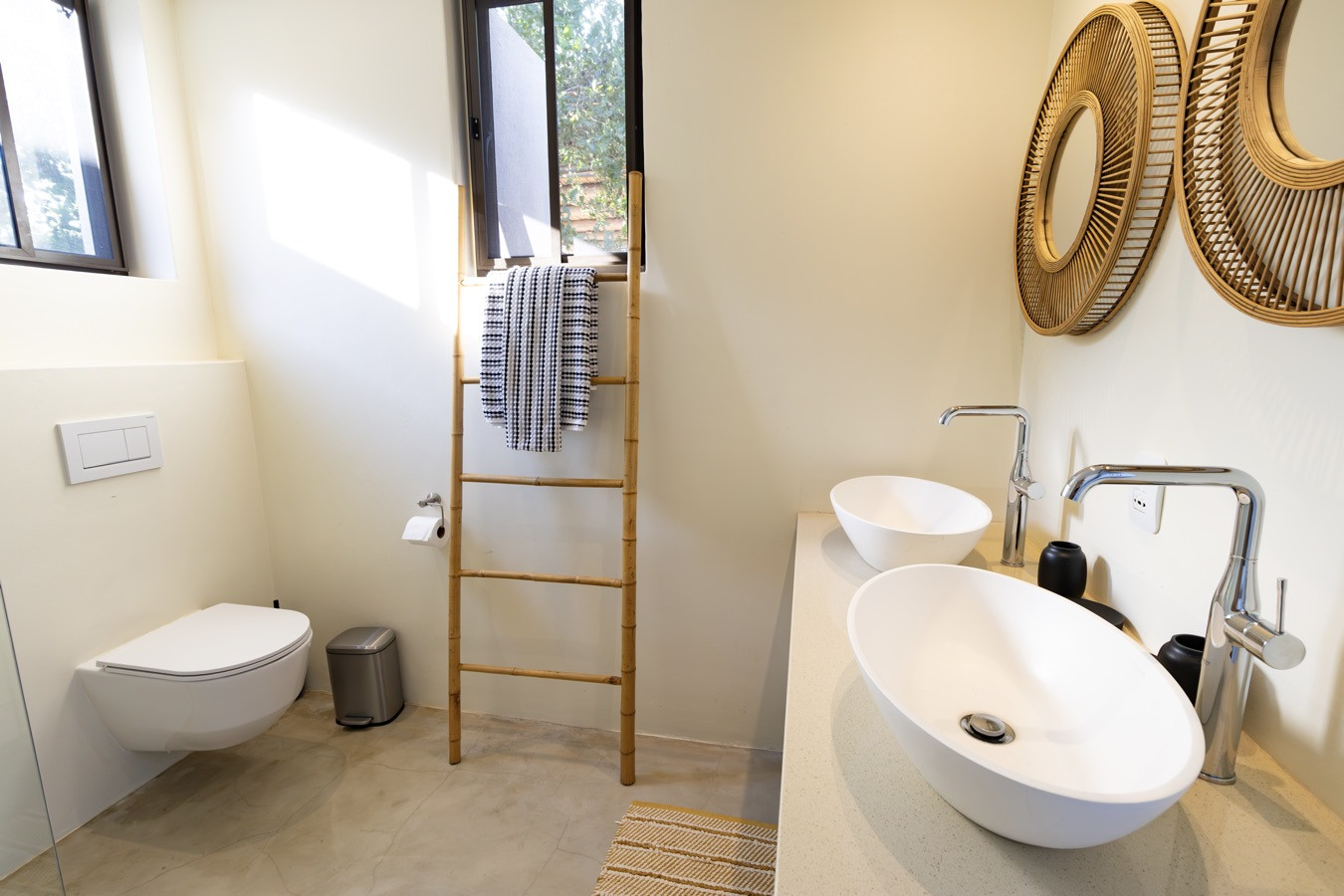 De master bedroom beschikt over een ensuite badkamer en een buitendouche, ideaal voor een verkwikkende douche onder de Afrikaanse hemel. De twee gastenslaapkamers delen een badkamer, eveneens voorzien van een buitendouche. Alle slaapkamers zijn uitgerust met airconditioning en ventilatie voor optimaal comfort.