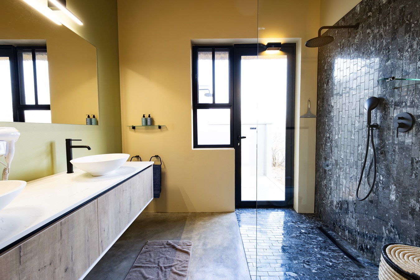 This house has 3 spacious bedrooms that are styled beautifully in natural pantones that complement the exterior. There is 2 bathrooms that include luxury outdoor showers to enjoy after a dip in the pool or in the evening under the African sky. One of the bathrooms is ensuite and equipped with a bath to soak in after a day of excitement. In addition, the house has a separate office with air conditioning.